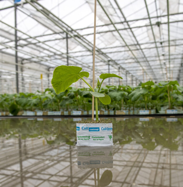 Plantenkwekerij Rob van Vegchel is gespecialiseerd in de opkweek van komkommerplanten.